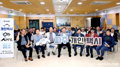 개인택시 이동시장실 개최… 천원택시 운행지역 확대 등 논의 파주시는 지난 24일 금촌3동 행정복지센터 대회의실에서 ‘개인택시 이동시장실’을 성황리에 개최했다. 이번 이동시장실에서는 김경일 파주시장, 파주시 개인택시조합 임원 및 조...