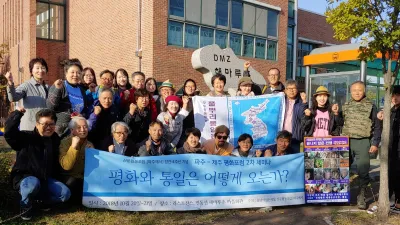 <특집 2> 「파주에서」 창간 4주년 기념 ‘파주-제주 평화포럼’ 평화와 통일은 어떻게 오는가? ▲ 민통선 해마루촌마을회관에서 파주-제주 평화 포럼을 마친 다음날 기념촬영 파주-제주 평화포럼...