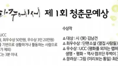 [제1회 청춘문예상 심사평] 상징의 구현, 미래의 전망 지역의 협동조합신문이란 것도 남다른데, 최전방 분단 접경 지역이라는 또 하나의 상징은 <<파주에서>>의 성격을 보다 분명하게 세워준다. 여기서 통일을 지향하는 주제를 내걸고 문예상을 공모하는...