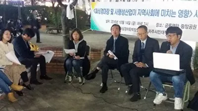 탄현면 화상경마장은 무산되었으나 사행성 산업 유치 가능성은 여전하다. 이에 화상경마장 반대 대책위가 토론회를 열어 시민들의 관심을 촉구했다. ■날짜 : 2016년 10월 14일 금요일 오후 7시 ■장소 : 금릉역 앞 중앙공원 ■발제자 및 토론자 : -발제자 : 정...