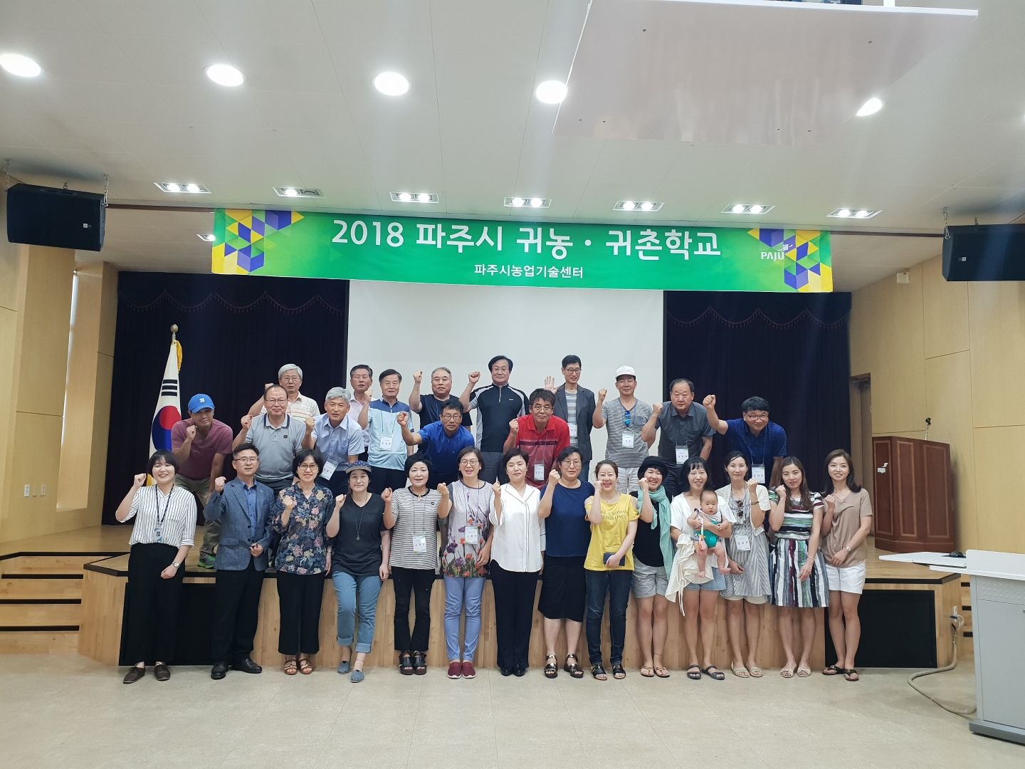 파주시는 지난 7월 30일 농업기술센터 농업과학교육관 3층 교육장에서 교육생 30여명을 대상으로 2018년 파주시 귀농·귀촌학교 수료식을 가졌다.