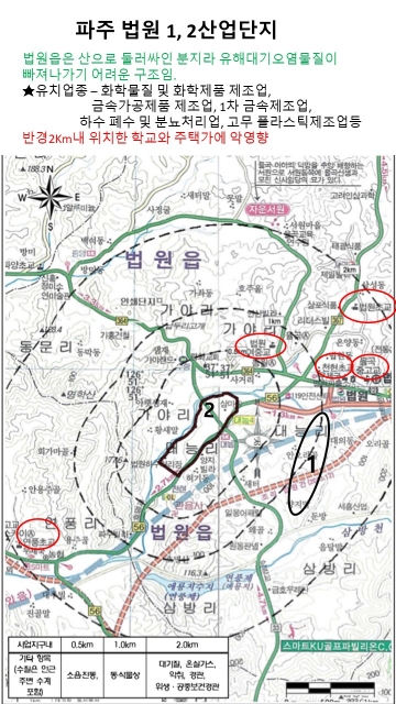 지난 7월27일 법원1일반산업단지 환경영향평가(초안), 교통영향평가, 재해영향평가등의 합동설명회가 법원읍사무소에서 있었다. 합동설명회를 하다보니 환경영향평가(초안)서에서 심의위원들이 지적한 사항에 대한 설명이 누락되어 있어 향후 산단이 건설된 이후 주민들에게 미치는 환경피해가 클 것으로 예상된다.