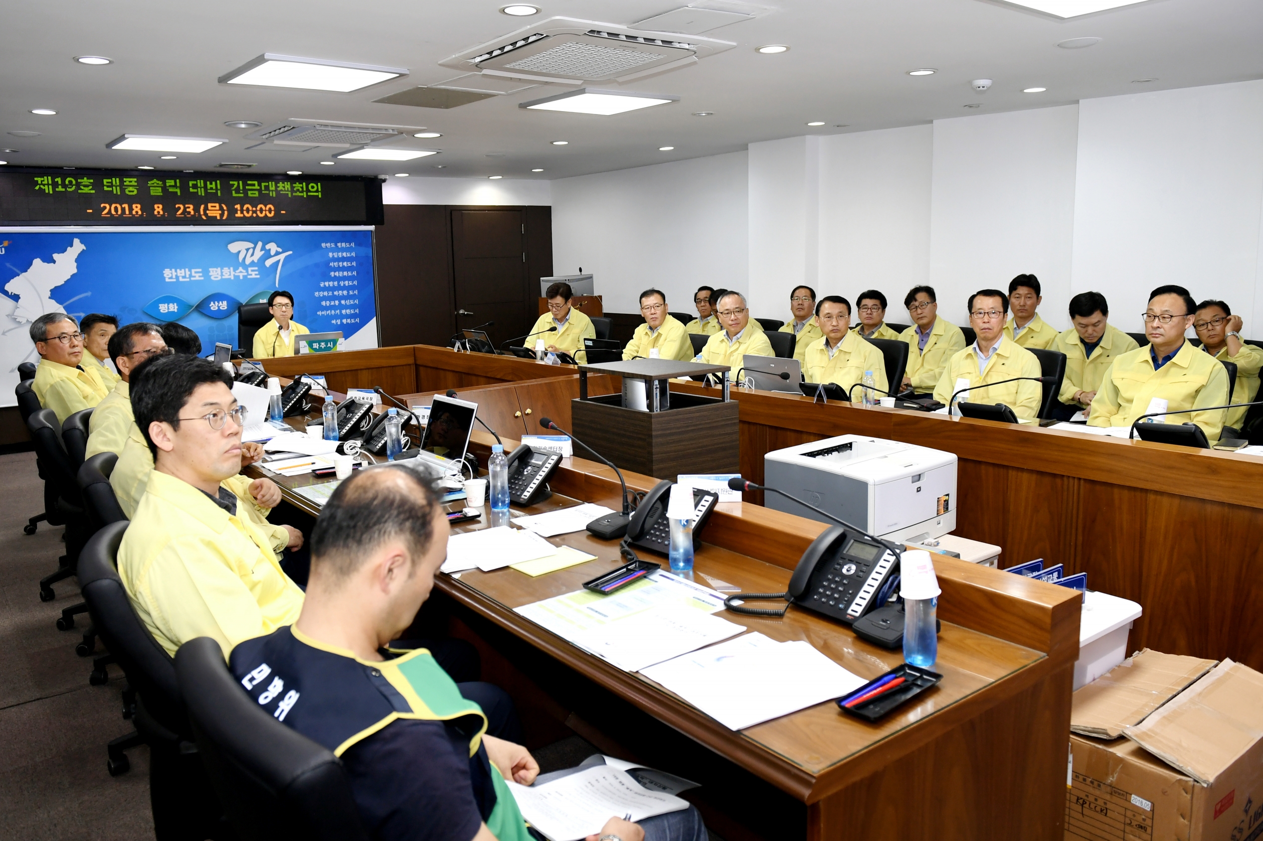 최종환 파주시장은 지난 23일 제19호 태풍 ’솔릭‘ 피해를 최소화하기 위해 국소단장 및 관련 부서장이 참석한 긴급대책회의를 가진데 이어 재해 취약지역 현장을 긴급 점검했다.