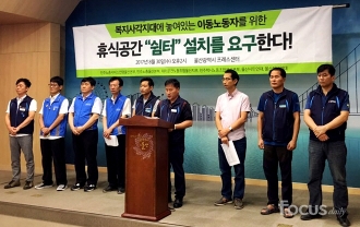▲이동노동자의 쉼터를 요구하는 울산시 노동자들의 기자회견 모습(자료사진, 출처 : 포커스데일리)