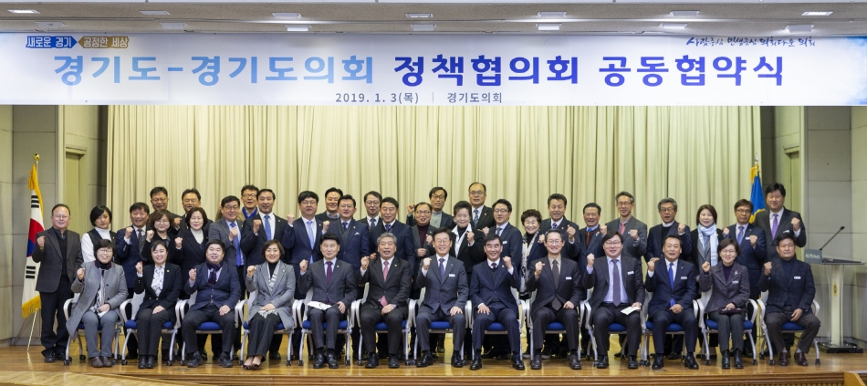 이날 서명식에서는 “소통과 협치를 바탕으로 도정의 주요정책 및 현안 해결 등 경기도민의 민생과 삶의 질 향상을 위해 업무협약을 체결한다”고 밝히고, 정책협의회의 구성 및 기능을 소개했다.