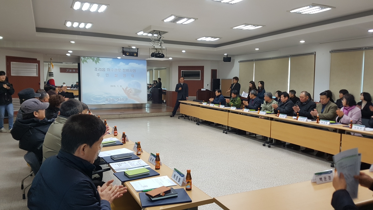 파주시는 지난 8일 조리읍 행정복지센터에서 28개 마을 이장들을 대상으로 2019년도 하수도분야 중점사업으로 조리읍 하수관로 정비사업의 본격적인 추진을 위한 주민설명회를 개최했다.