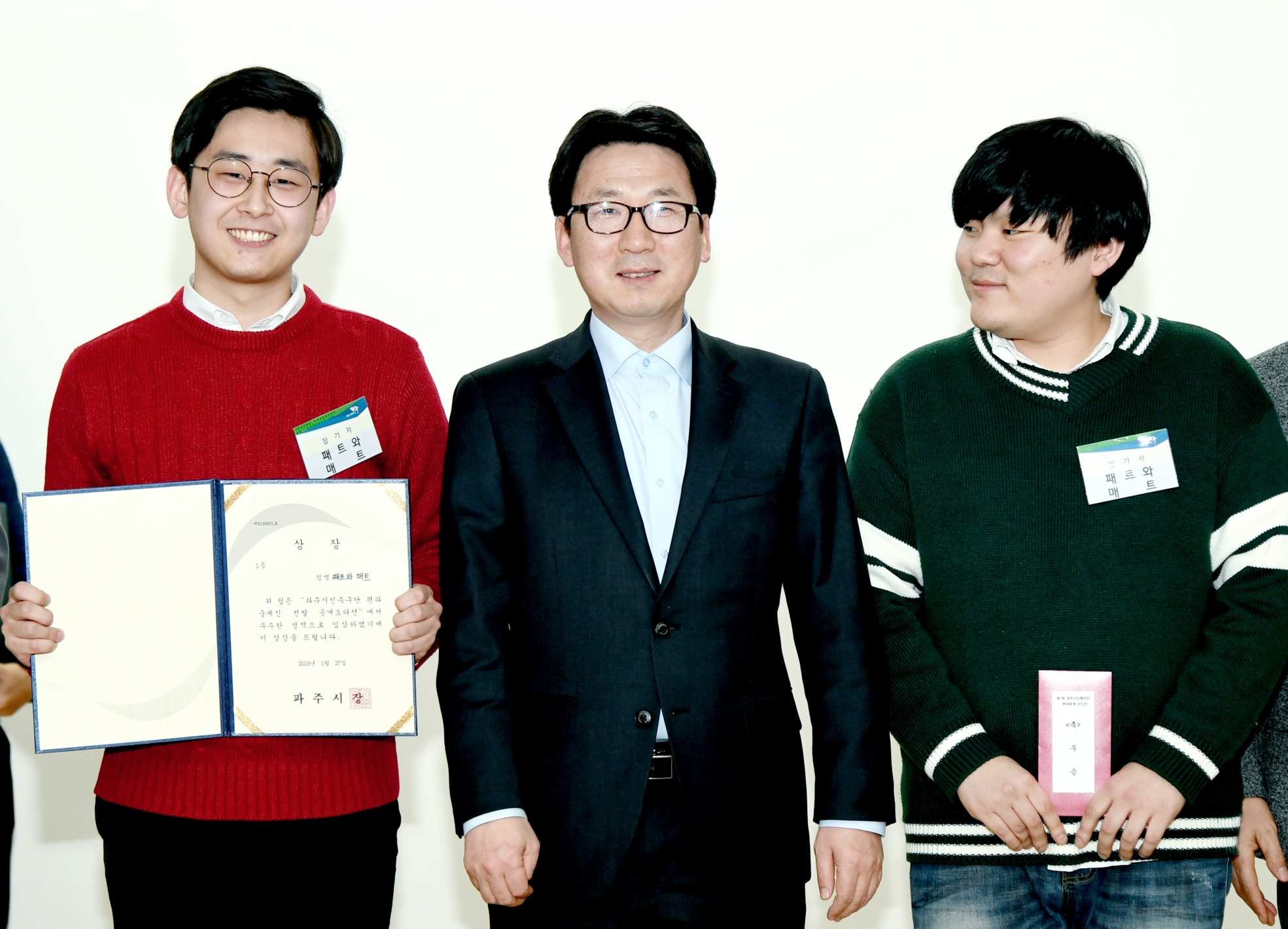 이번 오디션 결과 6개팀 중 우승을 거머쥔 ‘패트와 매트’팀은 취업준비생 28세 청년들로 “파주시민들이 즐겁게 응원하며 관람할 수 있는 하나의 컨텐츠를 만들고 싶다”는 당찬 포부를 밝혔다. 10년 동안 같은 팀에서 함께 축구선수로 활약하다 참가한 ‘내로남불’팀과 스포츠 현장에서 아나운서와 해설자로 활동하다 우연히 만나 이 자리까지 오게 됐다는 ‘뉴턴’팀이 각각 2위와 3위를 차지했다.