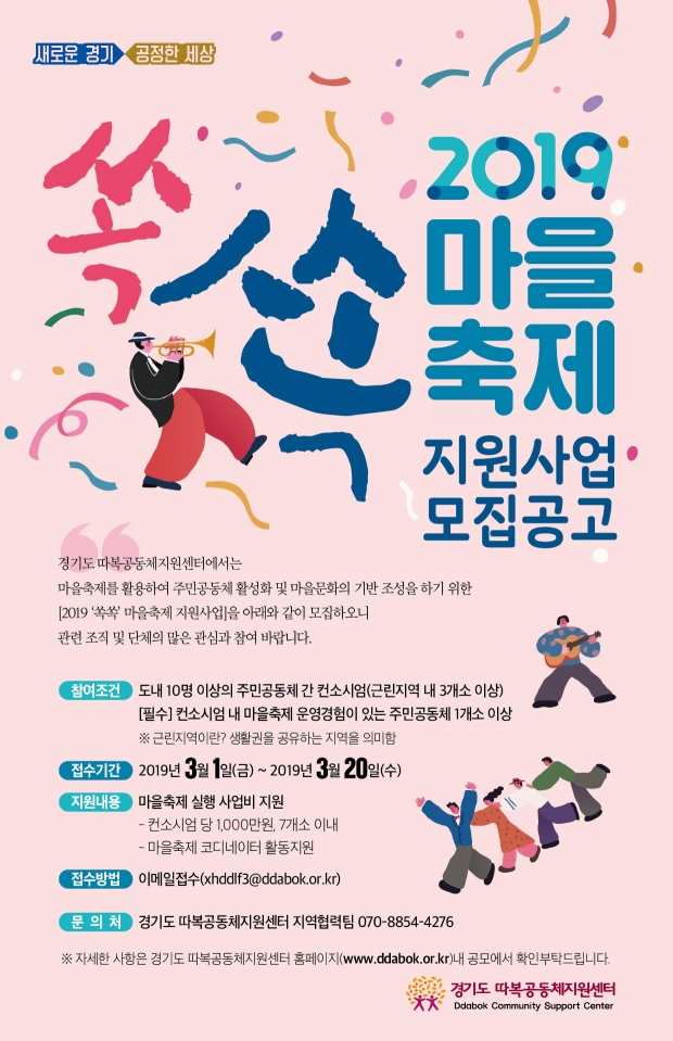 경기도, ‘2019 쏙쏙 마을축제 지원사업’ 참여 공동체 공모