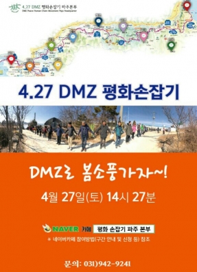 특히 이날 14시 27분에는 ‘4월 27일’의 의미를 되살려 ‘DMZ 평화 인간띠잇기 행사’를 시작한다. ‘DMZ 평화 인간띠잇기 행사’는 강화도에서 고성까지 DMZ평화누리길 500km구간에 1m 간격으로 시민 50만 명이 손을 잡고 인간띠를 만드는 것으로 4.27 판문점 선언을 기념하기 위해 마련됐다. 파주 구간에는 7~8만 명이 참여할 예정이며 강화(32km)~김포(32km)~고양(11km)~파주(76km)~연천(65km)~철원(71km)~화천(69km)~양구·인제(67km)~인제·고성(76km) 구간으로 진행된다.
