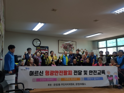 이날 어르신들이 안전하게 보행할 수 있도록 운정2동 주민자치위원회에서 준비한 어르신 형광안전 팔찌를 경로당에 전달하고 운정2파출소와 연계해 안전교육 및 심폐소생술 체험 교육을 연계 실시했다.