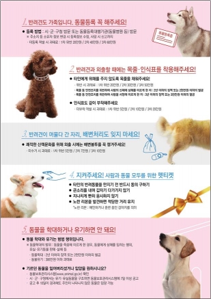 이에 도는 매월 마지막주 수요일 마다 도내 31개 시군, 동물보호단체, 동물보호명예감시원 등 관계자들과 합동 홍보·점검반을 구성해 홍보 캠페인과 점검을 실시할 방침이다.