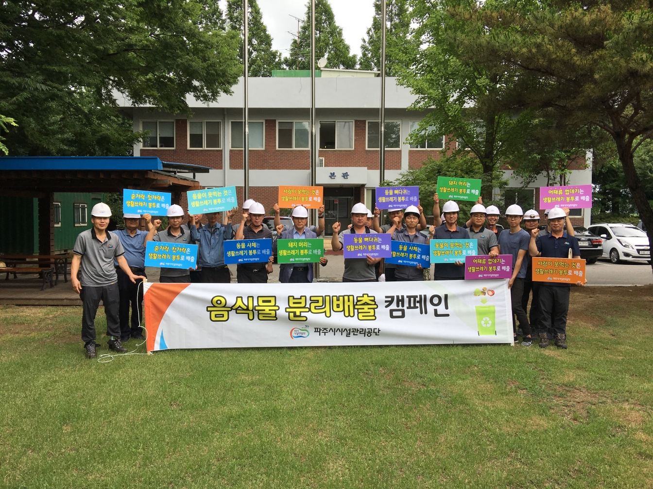 파주시시설관리공단(이사장 손혁재)은 지난 7월 23일 파주시(환경시설과)와 합동으로 여름 휴가철을 맞아 올바른 음식물쓰레기 분리배출에 대한 거리홍보 활동을 전개하였다.