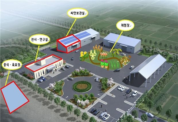 - 전시ㆍ연구실(235㎡), 씨앗보관실(저온저장고 100㎡), 체험장(1,200㎡), 증식ㆍ육묘장(3,960㎡)