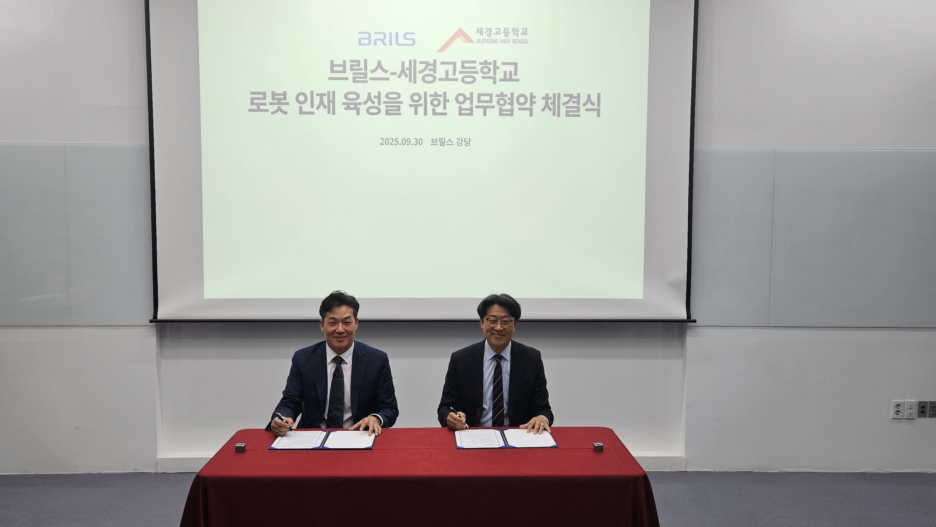 로봇 전문 기업 브릴스는 **세경고등학교(교장 장계홍)**와 함께 소버린 기반의 AI·로봇·자율주행 분야 핵심 인재를 조기 발굴하고 육성하기 위한 **산학협력 업무협약(MOU)**을 2025년 9월 30일 오후 2시, 인천 송도에 위치한 브릴스 본사에서 체결했다고 밝혔다.