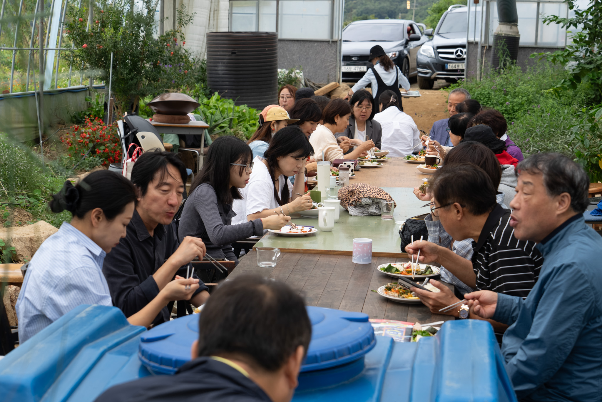 태양열, 지열, 태양광을 이용한 에너지자립온실에서는 무궁화꽃식초를 따뜻한 차로 끓이고 꽃젤리를 곁들여 오신 분들을 환영하고, 은은한 핸드팬 연주에 이어 요가동작을 다같이 해보며 몸을 풀었다. 얼마전 새로 조성한 연못과 빗물순환시설은 에너지자립온실에 빗물을 활용하여 식물을 키우도록 설계하여 이날 첫선을 보였다. 참가자들이 가져온 물건들은 기후마켓에서 새로운 주인을 찾아 차례로 흩어졌다.