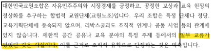 이처럼 문제가 많은 도서임에도 불구하고 교육부는 2024년 11월 26일‘공교육 정상화를 위한 교원노조와의 대화’를 명목으로 대한교조 등과 차담회를 갖고 업무협약(MOU)을 체결한 것으로 확인됐다.