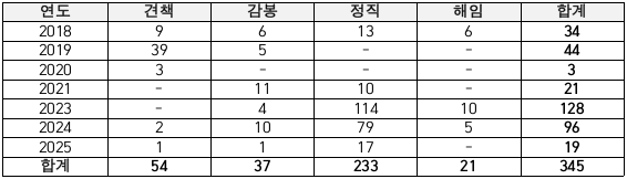 [표1] 한전의 태양광사업 겸직 관련 징계 조치 내역 (2018~2025년)