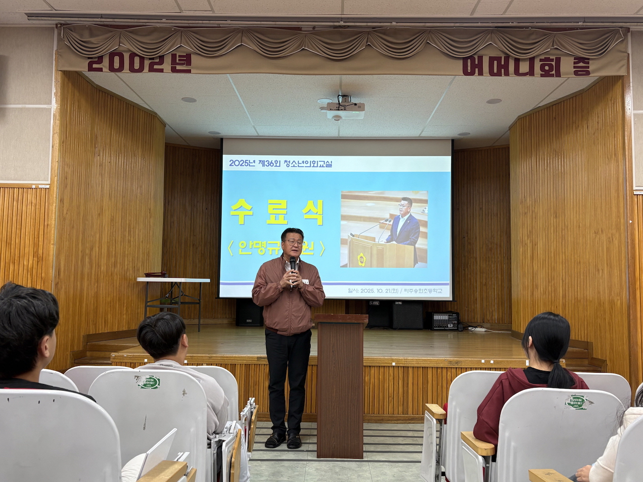 안명규 의원은 수료식 인사말에서 “의회는 한 사람의 목소리가 아니라 모두의 의견을 모아 더 좋은 답을 찾는 곳”이라면서 “친구의 생각을 끝까지 듣고 존중하는 것이 바로 민주주의의 첫걸음”이라고 강조했다. 이어 “이 자리에 있는 여러분이 어른이 되었을 때, 오늘의 경험이 공동체를 위해 생각하고 행동하는 힘이 되길 바란다”고 덧붙였다.