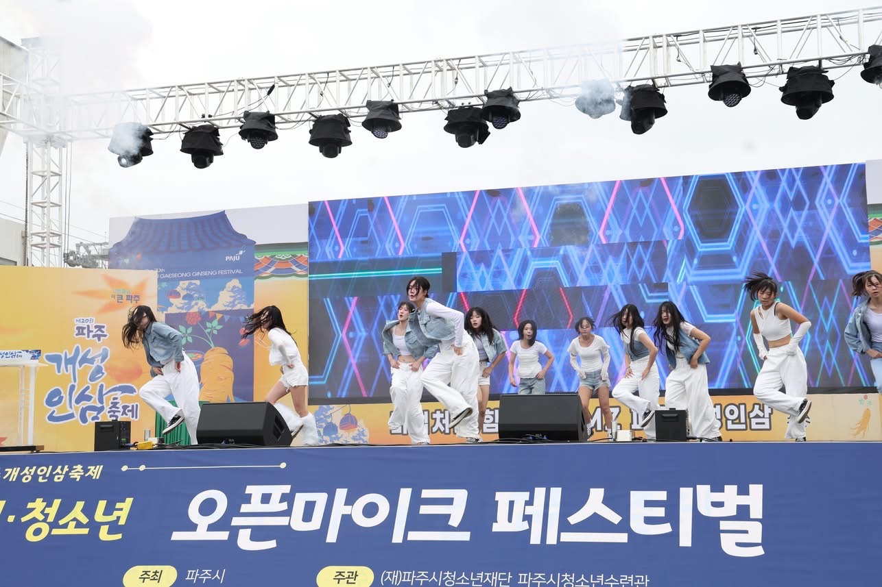 (재)파주시청소년재단 파주시청소년수련관(관장 박종훈)은 지난 10월 18일(토) 임진각 평화누리 야외무대에서 열린 「2025 파주개성인삼축제 청소년 공연 축제 [오픈마이크 페스티벌]」이 시민과 청소년 약 1,000여 명의 참여 속에 성황리에 마무리되었다고 밝혔다.