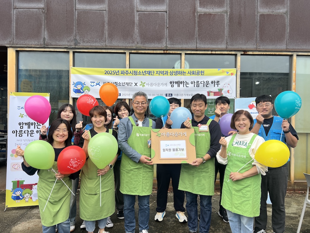 행사에는 아름다운가게 보물섬점과 상주직원 및 자원봉사자와 (재)파주시청소년재단 임직원이 함께 참여하여, 나눔의 가치를 되새기고 지역과 상생하는 기관의 비전을 공유하며 뜻깊은 시간을 가졌다.