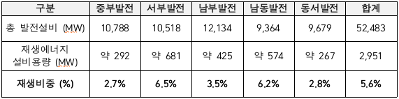 공공기관 경영정보 공개시스템(알리오)에 공시된 자료에 따르면, 2020년 이후 발전5사가 의결·추진한 신규 발전 설비 17건 전부가 LNG를 연료로 하는 복합·열병합발전소였다. 같은 기간 태양광·풍력·수소·ESS 등 재생에너지 신규 설비 투자는 단 한 건도 없었다. 이로 인해 발전5사의 재생에너지 설비 비중은 평균 5.6% 수준에 머물고 있으며, 특히 중부발전과 동서발전은 3%에도 못미치는 최하위를 기록했다.