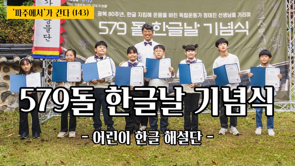 '파주에서'가 간다(143) 579돌 한글날 기념식 - 어린이 한글 해설단 (25.10.18 정태진기념관)동영상뉴스 | 작성일: 2025-10-23 16:49:17 | 수정일: 2025-10-23 16:49:17