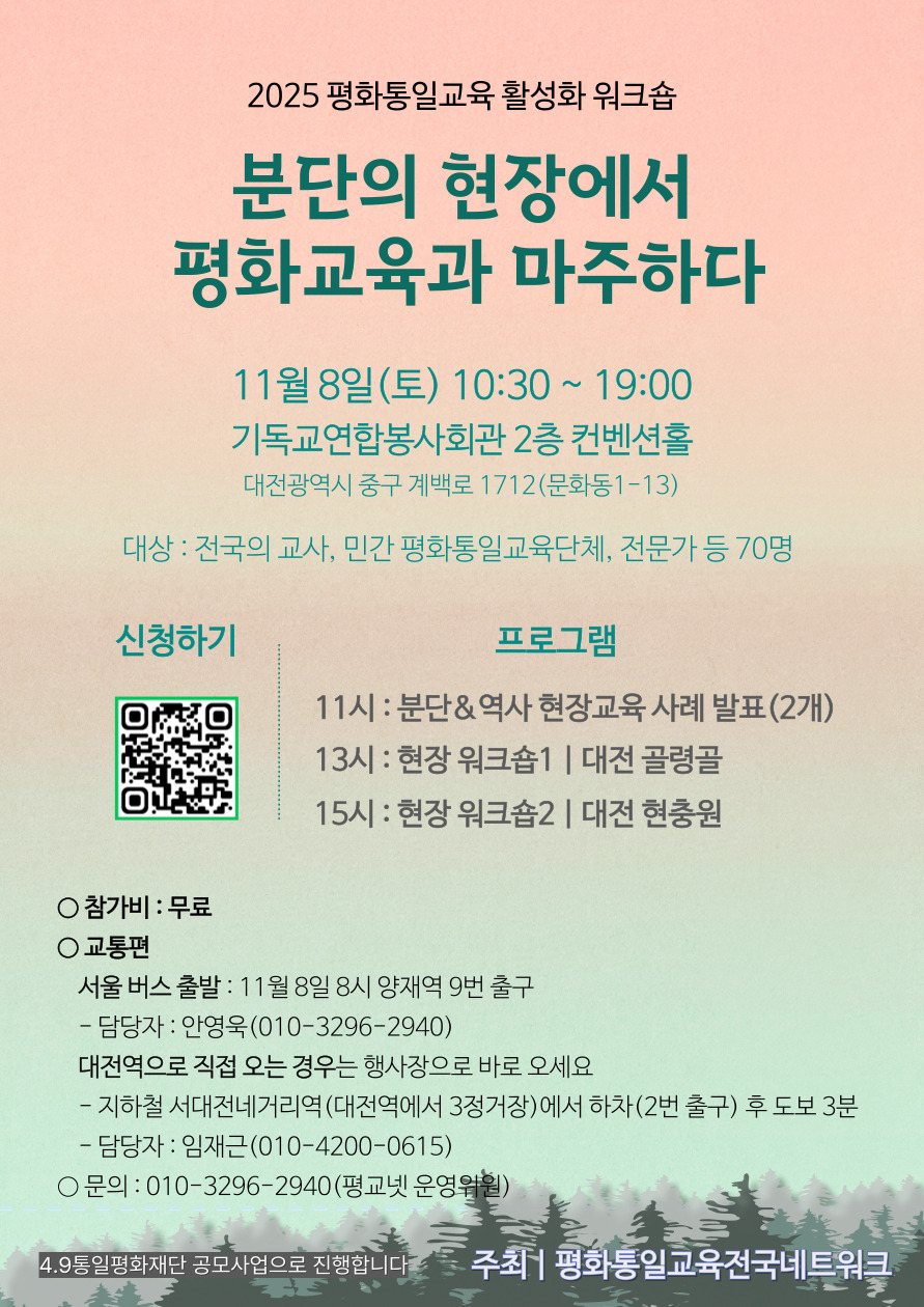 평화통일교육 활성화 워크숍 - 11월 8일 기독교연합봉사회관