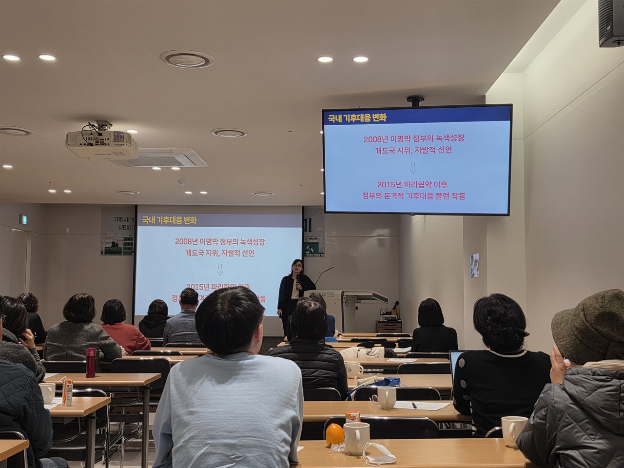 강의에 참석한 이영아 공동대표(탄소제로숲고양네트워크)는 “지난 8월 폭우로 고양시 전역이 마비됐다”며, “기후위기에 대비하는 도시만이 잘 사는 도시가 될 수 있다”고 말했다.