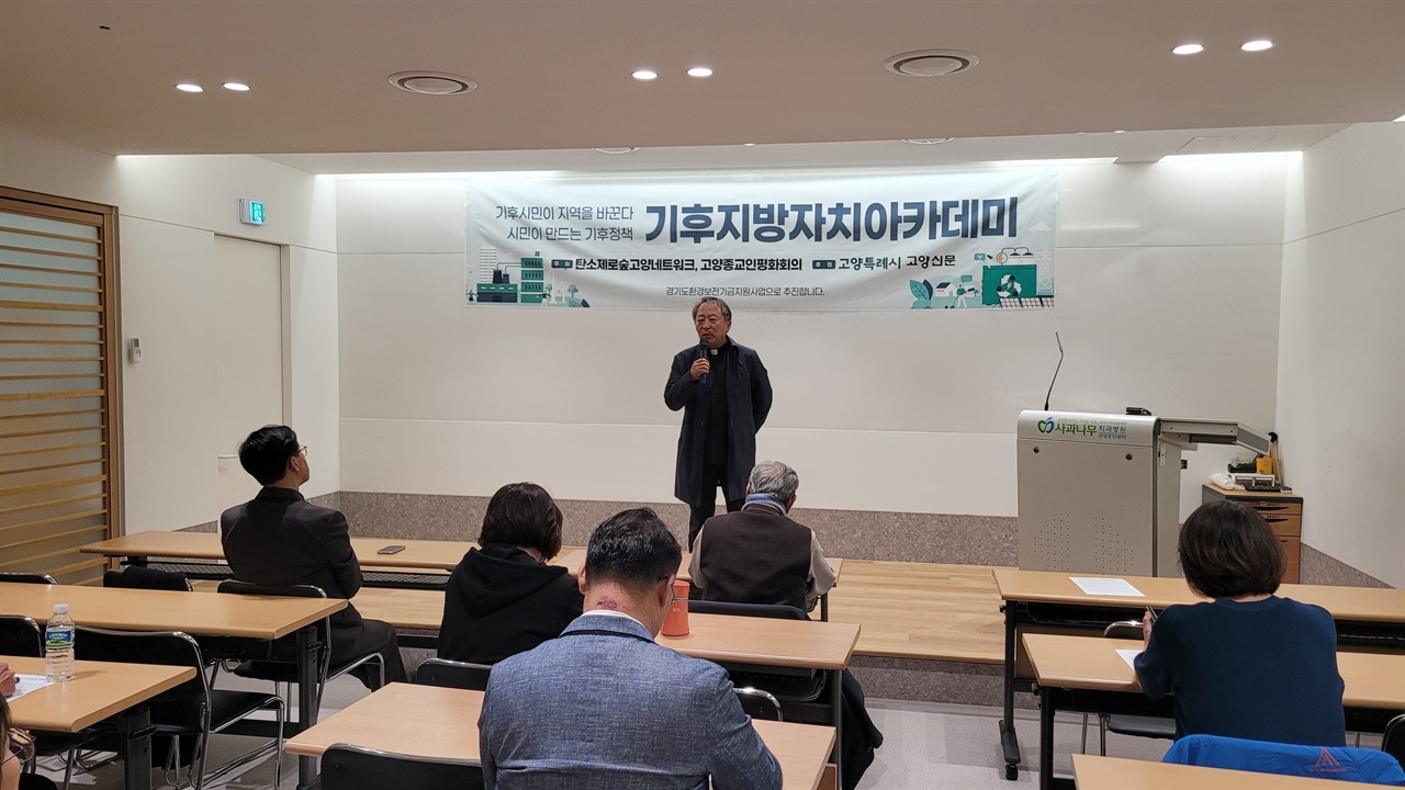 고양 탄소제로숲네트워크가 11월 1일 고양시 사과나무치과병원 교육센터에서 ‘기후 지방자치 아카데미 입교식’을 개최했다. 이번 행사는 종교·시민·정치·학계 인사들이 함께 모여 기후위기 대응을 위한 지방정책 방향과 시민교육의 필요성을 논의한 자리였다.