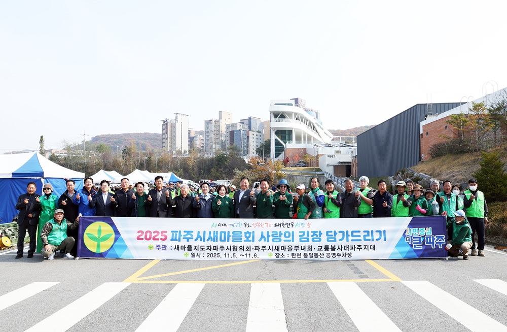 파주시새마을회는 지난 6일 탄현 통일동산 주차장에서 이웃사랑 실천을 위한 ‘사랑의 김장 담그기’ 행사를 성황리에 개최했다고 밝혔다.