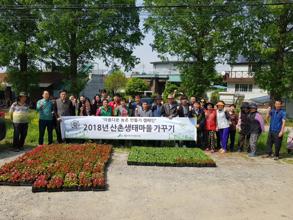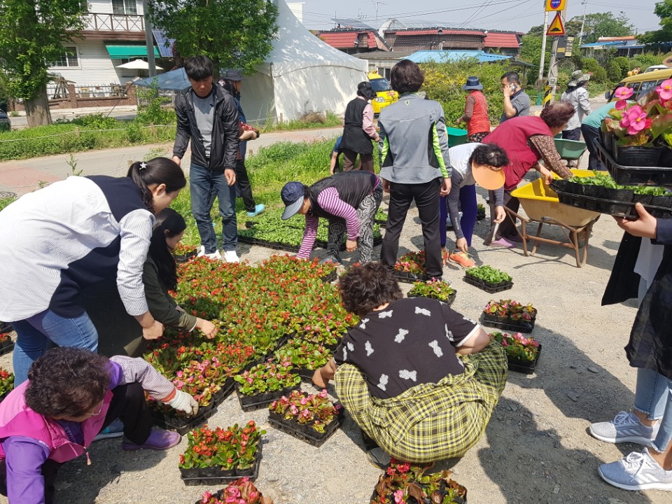 파주시산림조합은 ‘꽃마을’ 이라는 마을의 특성과 주민의 의사를 반영하여, 샤피니아 및 베고니아 총 꽃 1,800본을 지원하여 마을주민과 함께 꽃심기 및 마을 정화활동을 실시하였다.