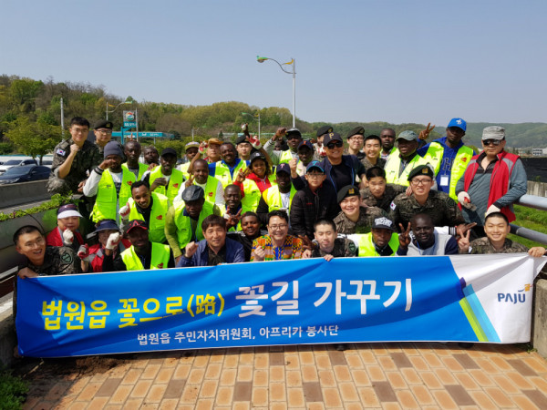 법원읍 주민자치위원회 관계자는 “꽃길 가꾸기 행사에 참여해주신 아프리카봉사단과 군장병들께 감사드린다”며 “꽃을 보는 주민들의 마음이 행복해지기를 바란다”고 말했다.