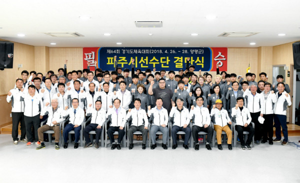 파주시는 지난 18일 파주시보훈회관에서 1천330만 경기도민의 대축제인 ‘제64회 경기도체육대회’에 참가하는 선수단 결단식을 참가선수와 체육회 임원이 참여한 가운데 개최했다.