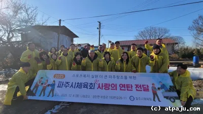 파주시체육회, ‘2025 사랑의 연탄 전달’ 봉사 활동 파주시는 파주시체육회가 지난 8일 겨울 한파로 어려움을 겪는 이웃들을 위해 ‘2025 사랑의 연탄 전달’ 봉사 활동을 진행했다고 밝혔다.&n...