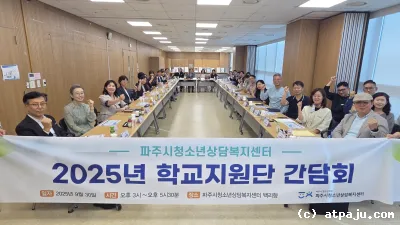 파주시청소년상담복지센터, 2025년 청소년안전망 학교지원단 간담회 개최-위기청소년 조기발견 및 맞춤형 지원 강화 (재)파주시청소년재단 파주시청소년상담복지센터(센터장 장문희)는 9월 30일(화) ...
