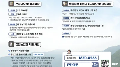 파주시, 2026년도 청년농업인 영농정착지원사업 대상자 모집- 12월 11일까지 신청 접수, 안정적인 영농기반 조성 지원   파주시는 젊고 잠재력 있는 인재들의 농업 분야 진출로를 넓히고자 오는 12월 11...