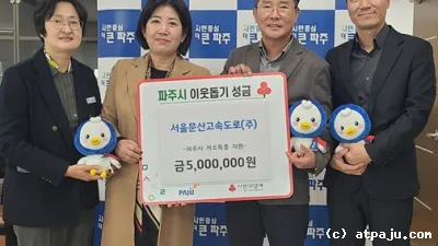 파주시, 서울문산고속도로㈜로부터 4년 연속 500만 원 후원금 기탁 받아  파주시는 지난 11일 서울문산고속도로㈜로부터 저소득 취약계층을 위한 후원금 500만 원을 기탁 받았다고 밝혔다.  ...