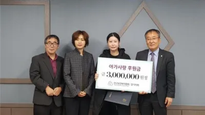 인구보건협회 경기도지회 아가사랑후원금 전달 인구보건협회 경기도지회는 11월 23일 군포시보건소(보건소장 김미경)에서 프라더-윌리 증후군을 앓고 있는 이모양(여/7개월)의 어머니에게 아가사랑후원금 300만원을 전달했다. 후원을 받은 이양은 출생과 함께 프라더-윌리 ...