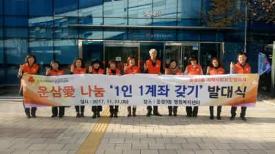 2017-11-23 11:03:00[파주시 운정3동] 파주시 운정3동, 이웃돕기 '운삼愛 나눔 1인 1계좌 갖기' 발대식