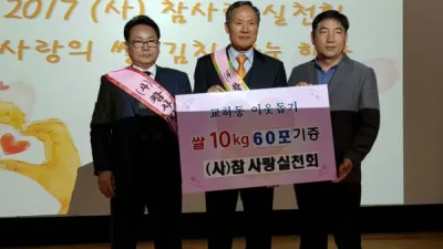참사랑 실천회, 교하동 어려운 이웃에게 쌀 정기 후원 약속 사단법인 참사랑실천회(회장 김승기)는 지난 21일 파주출판도시 아시아출판문화정보센터 이벤트홀에서 1년간 교하동 내의 어려운 이웃 5가구에 매달 쌀 10kg 1포씩 정기 후원을 약속하는 이웃돕기 행사를 가졌다....