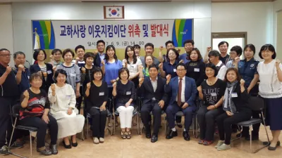 파주시 교하동 ‘교하사랑 이웃지킴이’ 이웃이 이웃을 돕는 마을 복지 앞장서다 파주시 교하동이 9일 행정복지센터 회의실에서 이웃이 이웃을 돕는 마을 복지 활성화를 위한 ‘교하사랑 이웃지킴이단’ 위촉 및 발대식을 가졌다. 이날 발대식에는 교하사랑 이웃지...