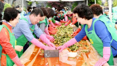 파주시 새마을부녀회 ‘사랑의 햇김치 담그기’ 행사 개최 파주시 새마을부녀회가 11일 파주스타디움에서 ‘사랑의 햇김치 담그기’ 행사를 갖고 사랑과 정성이 담긴 햇김치 1천 여통을 홀몸 어르신 및 소외계층에 전달했다. 이날 행사에는 이희만 협의회장, 유연희 부녀...