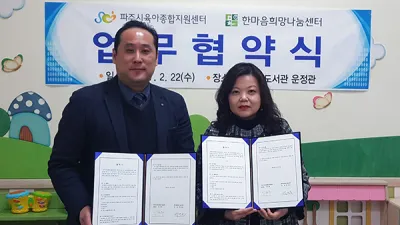 파주시 영유아 부모 상담‘마음Talk' 실시 파주시가 오는 3월부터 파주시 영유아 부모 상담으로 ‘마음 Talk' 을 실시한다. ‘마음 Talk'는 파주시육아종합지원센터와 상담전문기관 한마음희망나눔센터가 상호협력해 파주시육아종합지원센터를 통해 진행된다. 파...