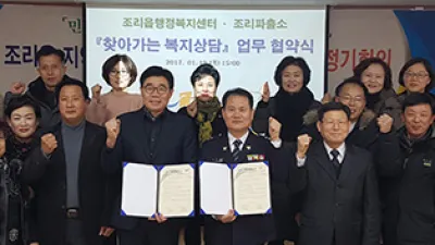 조리읍 ‘복지사각지대 발굴’ 파주시 조리읍 행정복지센터와 조리파출소가 1월 19일 조리읍 행복나눔협의체 위원 등 20여명이 참여한 가운데 ‘찾아가는 복지상담 및 복지사각지대 발굴’을 위한 업무협약을 체결했다. 이에 따라 복지담당자가 출소자, 정신질환자 등...