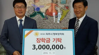 2016-11-15 18:29:00[(재)파주시행복장학회] ㈜피유시스·신도바이오㈜, 바자회 수익금 (재)파주시행복장학회에 기탁