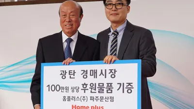 홈플러스 문산점 & 광탄경매시장 가정에 꼭 필요한 생활용품을 저렴한 가격에 낙찰받고~ 어려운 이웃도 돕고! 홈플러스 문산점(점장 윤천노)이 광탄경매시장과 함께 기부와 나눔의 이웃사랑을 실천하고 있다. 지난 11월 12일(토) 광탄경매시장에서 진행하는 경...
