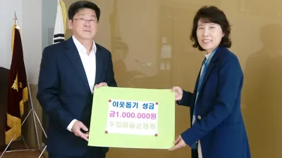 파주 두일마을운영회, 이웃돕기 성금 100만원 기탁 지난 24일 두일마을운영회(회장 최명애)가 복지사각지대에 있는 어려운 이웃들을 위한 성금 100만원을 지정 기탁하는 전달식을 가졌다. 두일마을운영회는 “우리 주변에 어려운 이웃들이 많지만 복지 사각지대에 놓여...