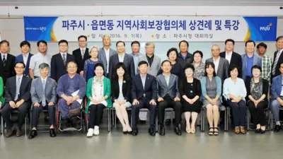 지역사회보장협의체 민·관 협력 및 네트워크 구축강화 다짐! - 파주시․읍면동 지역사회보장협의체 위원 상견례 및 특강 - 파주시는 9월 1일, 파주시청 대회의실에서 ‘파주시·읍면동 지역사회보장협의체(협의체) 위원 상견례 및 특강’ 시간을 가졌다. 정부의 맞춤형 복...