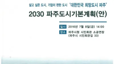 2016-07-13 11:05:00[도시개발과] 2030 파주도시기본계획안 공청회 개최
