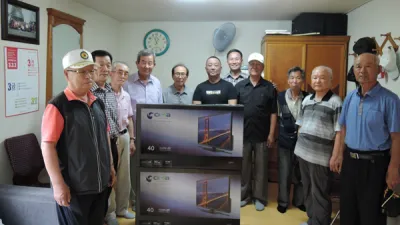 파주시 일하는 경로당, 어르신 웃음꽃 활짝 - 광탄면 동신라메르아파트 경로당에 ㈜조이데코 40인치 TV 2대 기증 - 파주 광탄면 동신라메르 아파트 경로당에 ㈜조이데코가 TV를 기증해 어르신들의 웃음꽃이 폈다. 경로당에 TV가 오래 되어 화면이 나오지 않았...